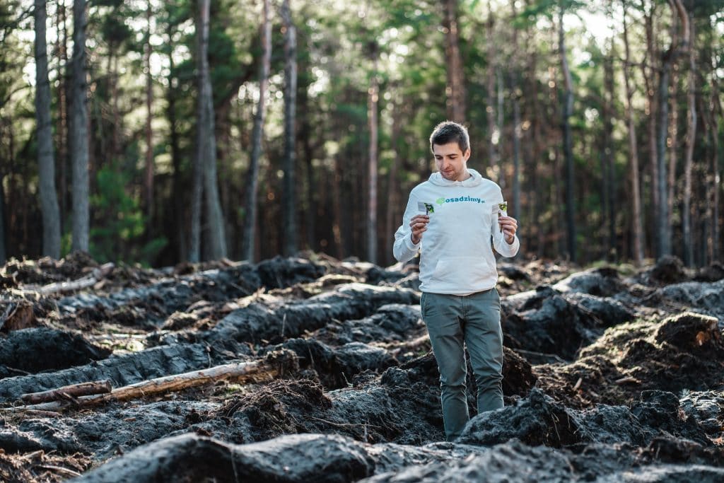 Jesienią 2021 zawitaliśmy do gminy Ogrodzieniec – to właśnie w tym miejscu posadziliśmy 23 000 sadzonek brzóz i sosen. Zobacz, jak powstał nasz wspólny las.